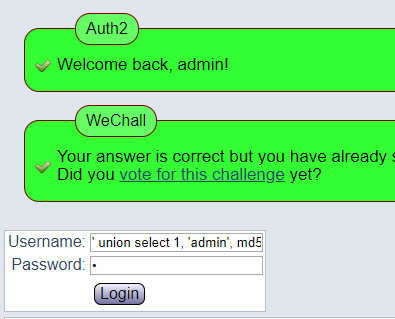 req = requests.post('http://www.wechall.net/challenge/training/mysql/auth_bypass2/index.php', data = datas, cookies = {'WC' : 'dummy'})
