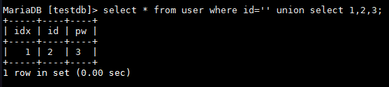 그럼 admin의 패스워드 값을 모르는 상태에서 로그인을 해야 하는데, 방법은 union 으로 값을 만드는 방법이 있다.