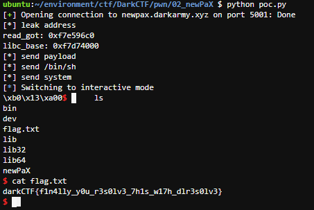 위에서 `libc_base` 주소와 `system()` 함수의 주소를 구했으므로 `rop` 공격을 진행하면 된다.