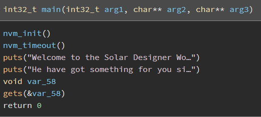 바이러니는 `main` 함수만 정의 되어 있다. `gets()` 함수에서 `BOF` 공격이 가능한 것을 볼 수 있다.