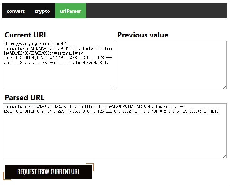 현재 접속한 url 을 가져와 GET 방식 부분만 쉽게 분석하도록 따로 분리하여 아래 사진처럼 출력이 된다.