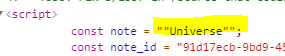 사용자가 입력한 데이터가 `note`라는 변수에 들어가 있기 때문이다. 더블쿼터로 escape하면 추가적인 script를 작성할 수 있지만, 특수문자는 escape가 된다.