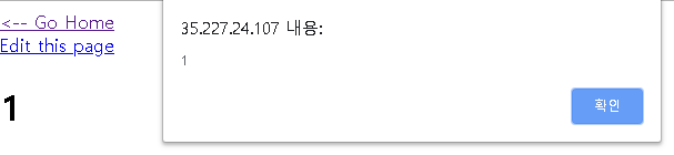 등록하면 아래 처럼 alert 함수가 동작 한것을 볼 수 있다.