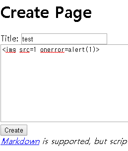 내용 부분에서는 script 태그가 다른 것으로 대체 되었다. 제목은 그대로 들어 갔지만 동작은 하지 않는다.