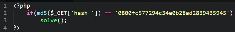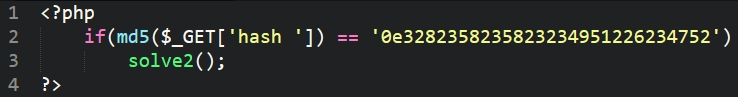 암호화된 문자열을 md5로 복호화 하면 ‘hash’ 라는 단어가 나온다. GET 방식으로 ?hash=hash 라고 보내면 첫번째 문제는 풀린다.