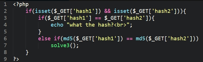 이번에는 2개의 GET 값을 받게 되는데 두개의 string은 달라야 하고, md5로 hash 했을 때 같아야 하는 문제이다.