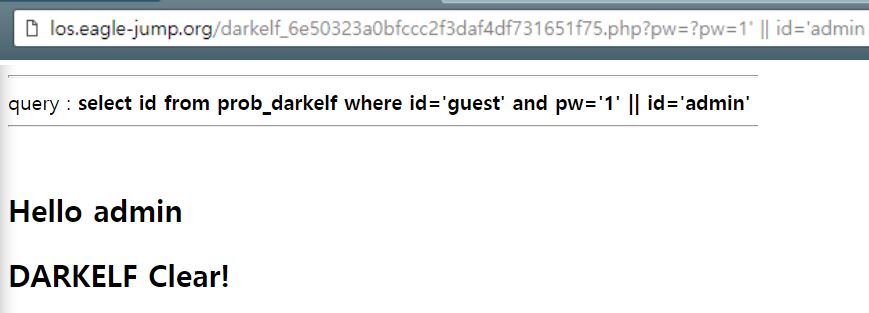 [LOS] – darkelf 힌트 및 풀이 2019.04.06 16:22 🚩CTF 글 작성자: Universe7202 힌트1. pw에 or과 and를 필터링 하고 있다. 우회기법은? 힌트2. or은 || 로, and는 &&로 해야한다. 하지만 GET으로 &&를 넘긴다면 %26%26으로 보내야 할 것이다. 풀이.위에 힌트에서 말했듯이 or,and는 || 와 &&로 우회가 가능하다. 그럼 답은 나왔다.?pw=1′ || id=’admin 공유하기 게시글 관리 Universe blog '🚩CTF' 카테고리의 다른 글 [LOS] – troll 힌트 및 풀이 (0) 2019.04.06 [LOS] – orge 힌트 및 풀이 (0) 2019.04.06 [LOS] – wolfman 힌트 및 풀이 (0) 2019.04.06 [LOS] – orc 힌트 및 풀이 (0) 2019.04.06 [LOS] – goblin 힌트 및 풀이 (0) 2019.04.06 댓글 공유하기 다른 글 댓글 이 글 공유하기 구독하기 구독하기 카카오톡 카카오톡 라인 라인 트위터 트위터 Facebook Facebook 카카오스토리 카카오스토리 밴드 밴드 네이버 블로그 네이버 블로그 Pocket Pocket Evernote Evernote 다른 글 [LOS] – troll 힌트 및 풀이 [LOS] – troll 힌트 및 풀이 2019.04.06 [LOS] – orge 힌트 및 풀이 [LOS] – orge 힌트 및 풀이 2019.04.06 [LOS] – wolfman 힌트 및 풀이 [LOS] – wolfman 힌트 및 풀이 2019.04.06 [LOS] – orc 힌트 및 풀이 [LOS] – orc 힌트 및 풀이 2019.04.06 다른 글 더 둘러보기