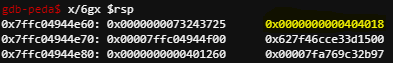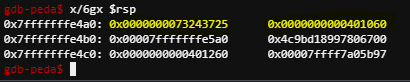 위 사진에서 rsp 값은 입력한 "%7$s" 값이 들어갔고, rsp+0x8 값은 어떠한 함수의 주소를 저장하고 있다.