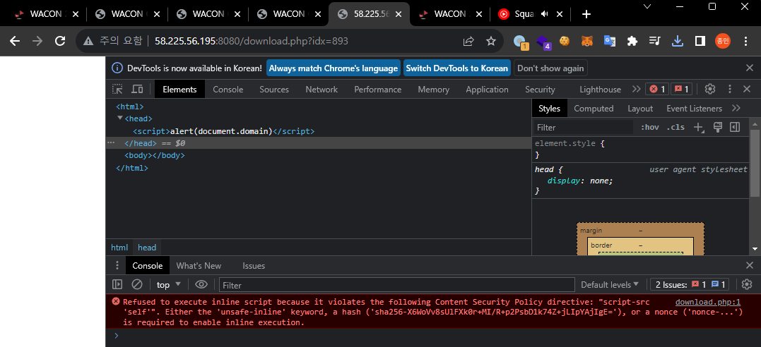 | [WACon 2022] yet_another_baby_web (0) | 2022.06.28 |