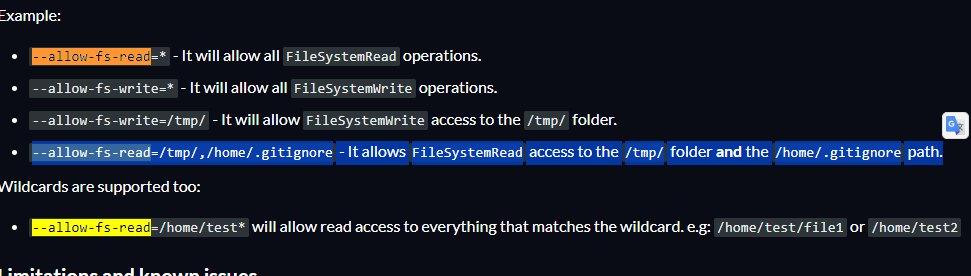 const args = ["--experimental-permission", "--allow-fs-read=/app/*"];