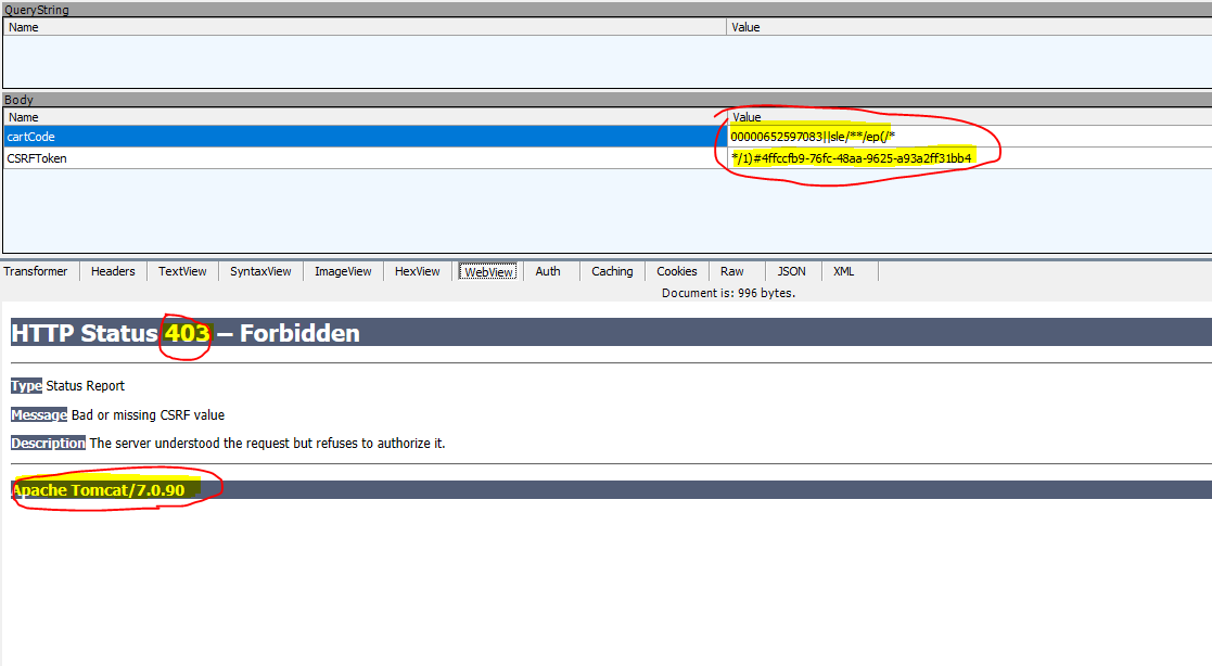 cartCode=00000652597083||sle/**/ep(/*&CSRFToken=*/1)#4ffccfb9-76fc-48aa-9625-a93a2ff31bb4