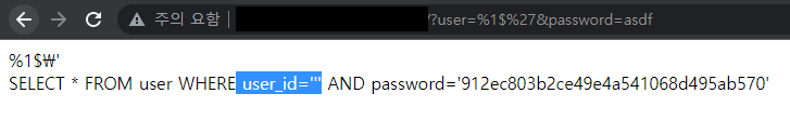 결국엔, user_id에는 password 변수의 값이 들어간 것을 볼 수 있다.