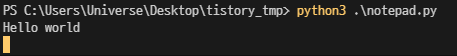 똑같은 작업 폴더에 `notepad.py` 파일을 만든 뒤, 아래 코드를 작성한 후 실행하면 `[사진 2]` 처럼 출력되는 것을 볼 수 있다.