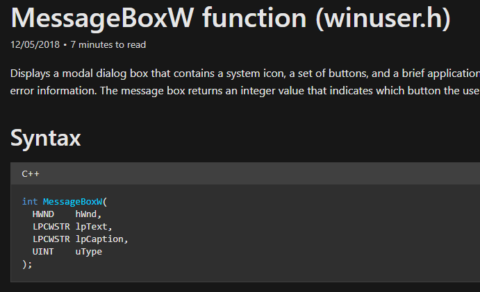 우리는 `MessageBoxW` 함수의 주소를 알고 있으므로, 이것의 복제본을 만들어서 원하는 타이밍에 함수를 실행 시킬 수 있다.