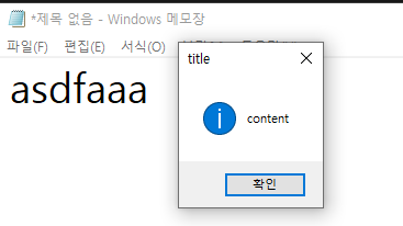 위 결과는 [사진 4]에서 message box가 출력될 때, message box의 제목과 내용이 출력되는 것을 볼 수 있다.