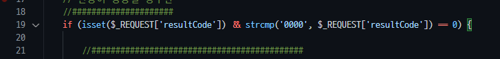 우선 `resultCode` 값을 GET 방식으로 0000 이라는 값을 보내야 한다.