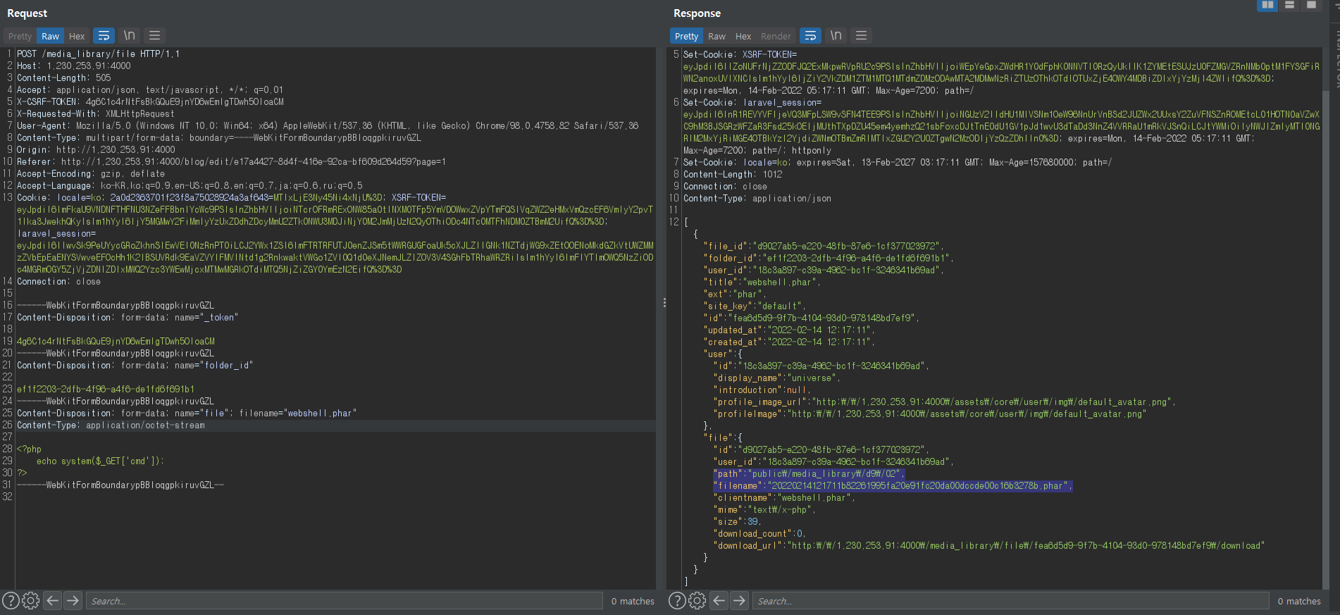 위 링크에 설명되어 있는 것 처럼, 공격자가 "미디어 라이브러리" 기능을 통해 phar 파일을 업로드 하면 업로드 경로를 알 수 있고, 성공적으로 webshell을 얻을 수 있다.