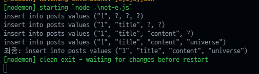 data('insert into posts values (?, ?, ?, ?)', [ noteId, title, content, login ]);