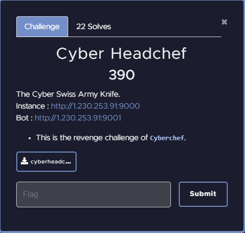 https://gist.github.com/as3617/256b92b451a863732e6c8992cbeda0a9#file-cyber-headchef-md