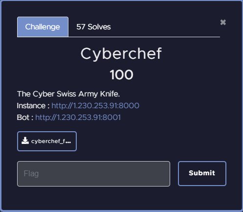 cyberchef 는 github에 opensource로 공개되어 있는데, issue 에서 XSS payload를 얻을 수 있었다.
