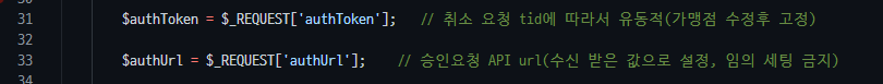 위 코드에서 `175번째` 줄에 `$netCancel` 변수도 GET 방식으로 데이터를 전송할 수 있다.
