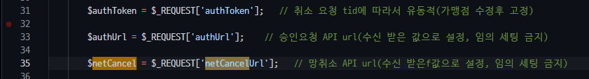 위 코드에서 `175번째` 줄에 `$netCancel` 변수도 GET 방식으로 데이터를 전송할 수 있다.