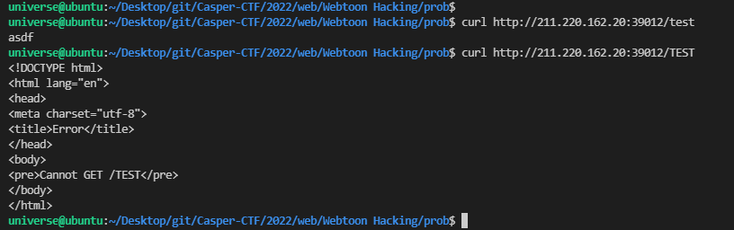 반대로, 옵션을 추가하지 않으면 `/test` 와 `/TEST` 는 정상적인 요청으로 받아드려 같은 응답을 하게 된다.