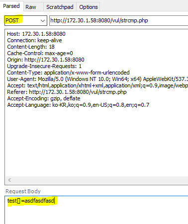 정리하자면, strcmp로 어떤 문자열을 비교하게 된다면 배열 형식으로 데이터를 보내면 우회가 가능하다.