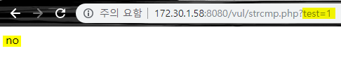 ?test[]=asdfasdfasdf 와 같은 배열 형태로 값을 보내게 되면 yes라는 문구가 출력되는 것을 확인 할 수 있다.