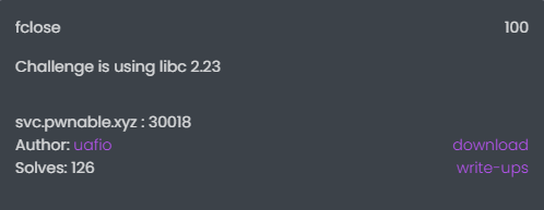실습 파일은 https://pwnable.xyz 사이트에 있는 `fclose` 문제를 사용하겠습니다.