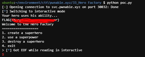 [pwnable.xyz] Hero Factory write up