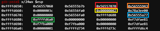 0xffffd650: 0x56557060 0x56555b7b 0x56557070 0x56555943