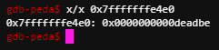 마찬가지로 0x7fffffffe4e0 이 주소에 접근하면 0x0000000000deadbe 값이 출력이 된다.
