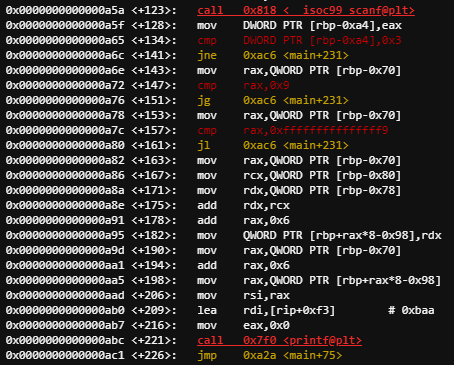 이렇게 scanf 함수에서 3번째 인자의 값이 -6과 -5 임을 구했다.