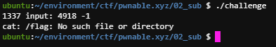 ubuntu:~/environment/ctf/pwnable.xyz/02_sub $ ./challenge