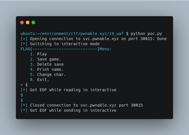[pwnable.xyz] uaf write up