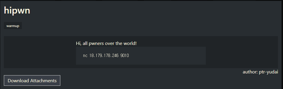zer0pts 2020 CTF 문제 중 pwnable 분야의 hipwn 이다.