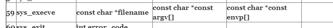 /bin/sh 을 실행하기 위해 아래 syscall table 목록에서 sys_execve 함수를 호출해야 한다.